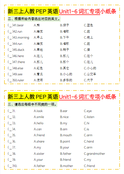 五年级英语下册单词表汉译英(带四线格)(人教PEP版)