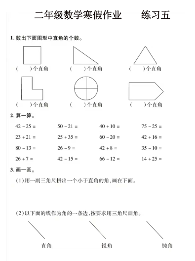 2025二年级数学寒假作业16页