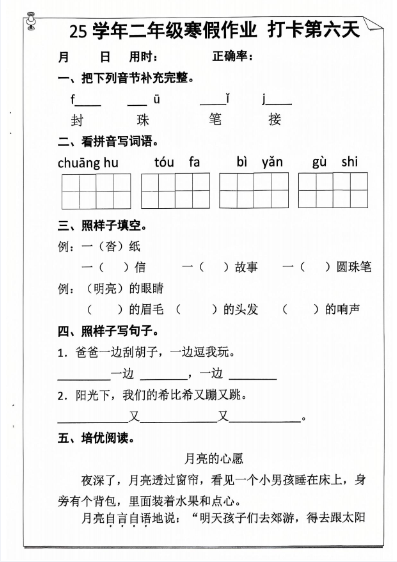 2025二年级语文寒假作业每日一练(完整20天)20页