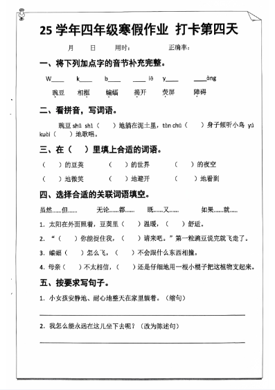 2025最新4年级语文寒假作业