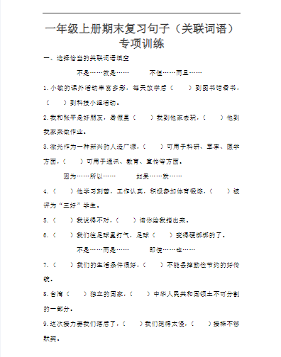 1上句子训练专项练习(16页)