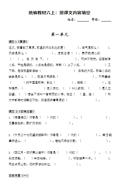 6上按课文内容填空