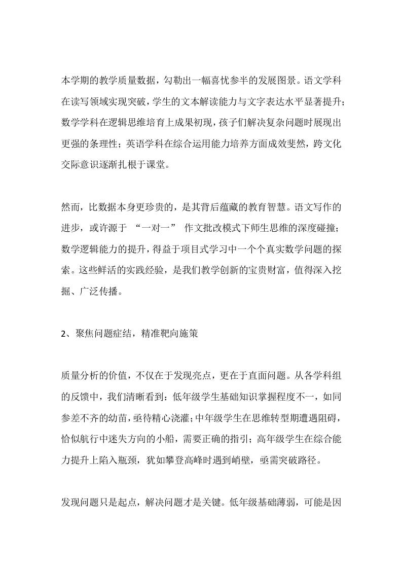 期末教学质量分析会,校长总结发言:用智慧与汗水浇灌教育之花,共同书写学校高质量发展的辉煌篇章 期末试卷 幼师优势 2025-10-18 教务 资源下载下载价格1.2 下载币VIP免费升级VIP立即购买 ——预览已结束,还剩4页未读——开通会员后可免费下载高清完整文档 阅读全文