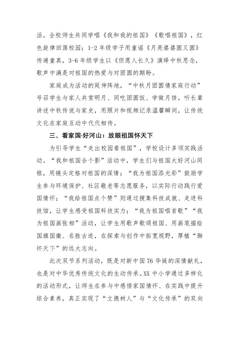 2025年“寄情中秋,喜迎国庆”中秋国庆双节活动报道:76载风华映山河双节同庆家国梦 综合资料 幼师芒果 2025-10-18 教务 资源下载下载价格1.2 下载币VIP免费升级VIP立即购买 ——预览已结束,还剩1页未读——开通会员后可免费下载高清完整文档 阅读全文