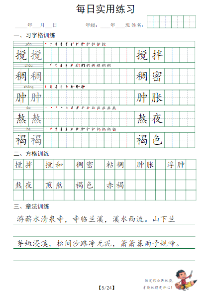 2025春【习字格+方格+章法练习(全50页)】六下语文