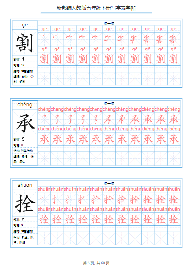 25春5年级语文下册【写字表-字帖60页】五下语文