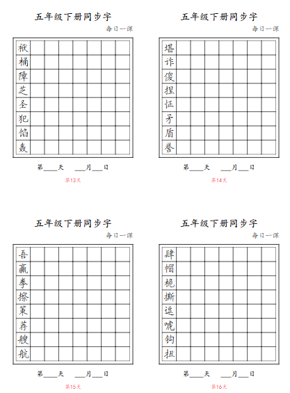 25春5年级语文下册【同步字-每日一课字帖】五下语文