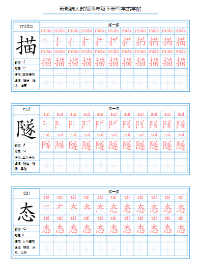25春【词语表字帖20页】四下语文