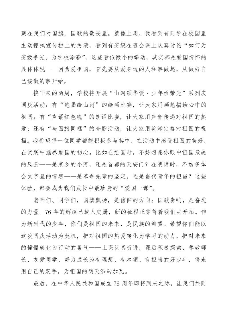 “以少年之姿,赴时代之约,贺祖国华诞”——校长国旗下讲话稿 综合资料 幼师郝雪 2025-10-17 教务 资源下载下载价格1.2 下载币VIP免费升级VIP立即购买 ——预览已结束,还剩1页未读——开通会员后可免费下载高清完整文档 阅读全文