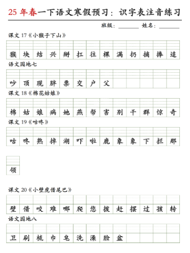 《2025春新课改一年级语文-寒假预习识字表注音练习》 专项练习 水果叶子 2025-10-28 一年级 资源下载下载价格1.6 下载币VIP免费升级VIP立即购买 本页为资源截图试看,VIP会员免费下载,同时VIP会员可以打包下载 阅读全文
