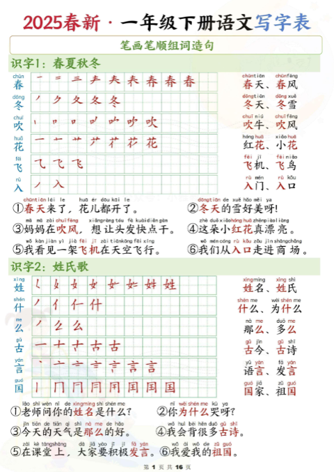 《2025春新课改一下语文写字表笔画笔顺组词造句》(16页) 不限 栀晴 2025-10-28 一年级 资源下载下载价格1.6 下载币VIP免费升级VIP立即购买 本页为资源截图试看,VIP会员免费下载,同时VIP会员可以打包下载 阅读全文