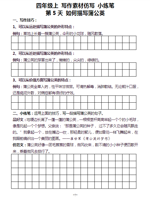 《2025春新课改三升四暑假写作素材仿写每日一练》(40篇)
