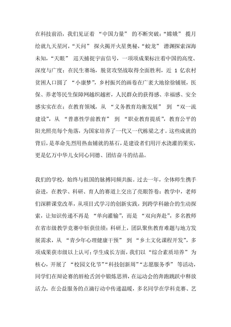 2025年国庆节前校长讲话:76载的辉煌已载入民族史册,新的征程正等待我们开拓 综合资料 幼师郝雪 2025-10-17 教务 资源下载下载价格1.8 下载币VIP免费升级VIP立即购买 ——预览已结束,还剩3页未读——开通会员后可免费下载高清完整文档 阅读全文