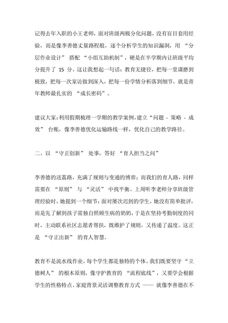 引用热播剧《长安的荔枝》,校长在期末青年教师座谈会上发言:深耕教育“育人田”,争做有为“筑梦师” 期末试卷 栀晴 2025-10-17 教务 资源下载下载价格1.2 下载币VIP免费升级VIP立即购买 ——预览已结束,还剩2页未读——开通会员后可免费下载高清完整文档 阅读全文