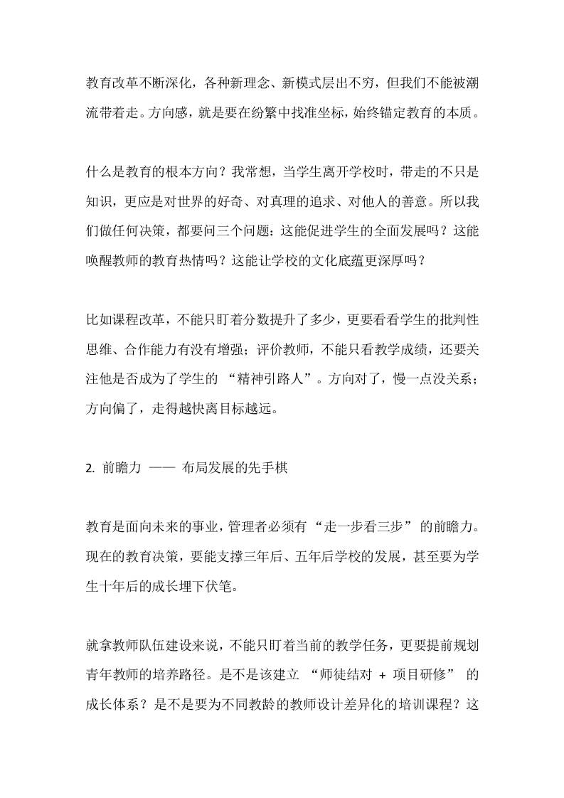 中小学校长在学校中层行政班子会议上讲话:硬件是基础,师资是核心,但管理团队的战斗力是关键 综合资料 幼师郝雪 2025-10-16 教务 资源下载下载价格1.2 下载币VIP免费升级VIP立即购买 ——预览已结束,还剩7页未读——开通会员后可免费下载高清完整文档 阅读全文