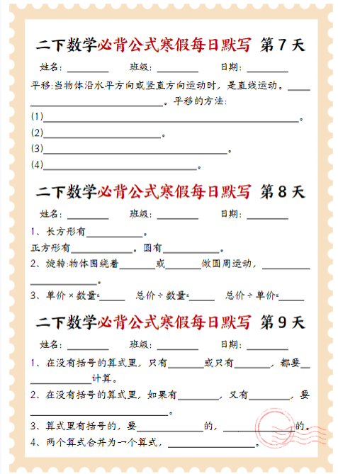 【精品】二下数学《必背公式寒假每日默写》