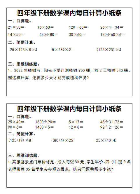 【精品】第一单元四则运算·应用篇【十三大考点】-2023-2024学年四年级数学下册典型例题系列(原卷版)人教版1