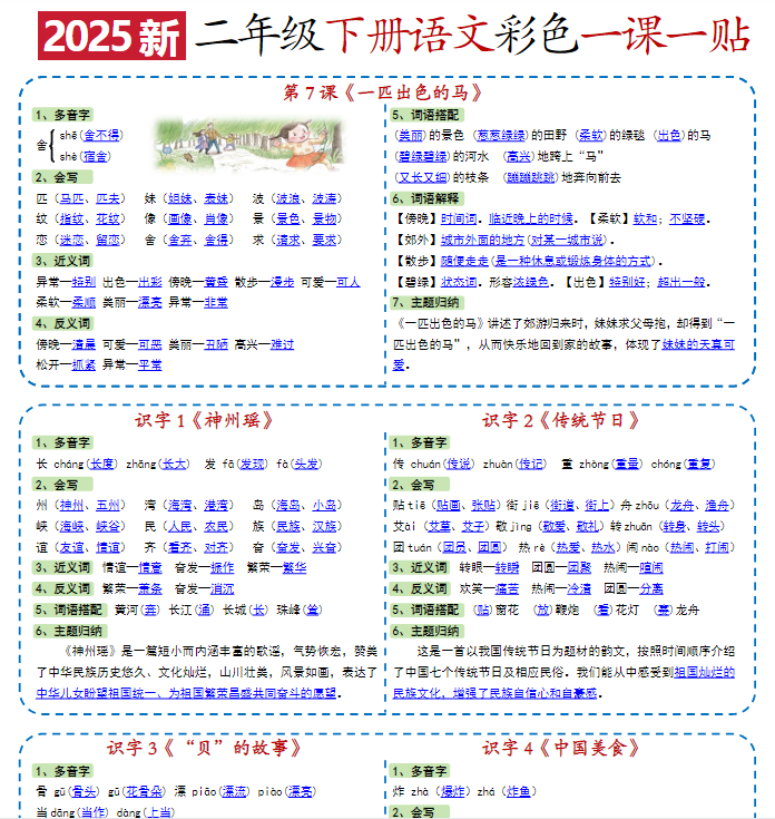 【精品】【2025新二下语文彩色一课一贴】(9页)