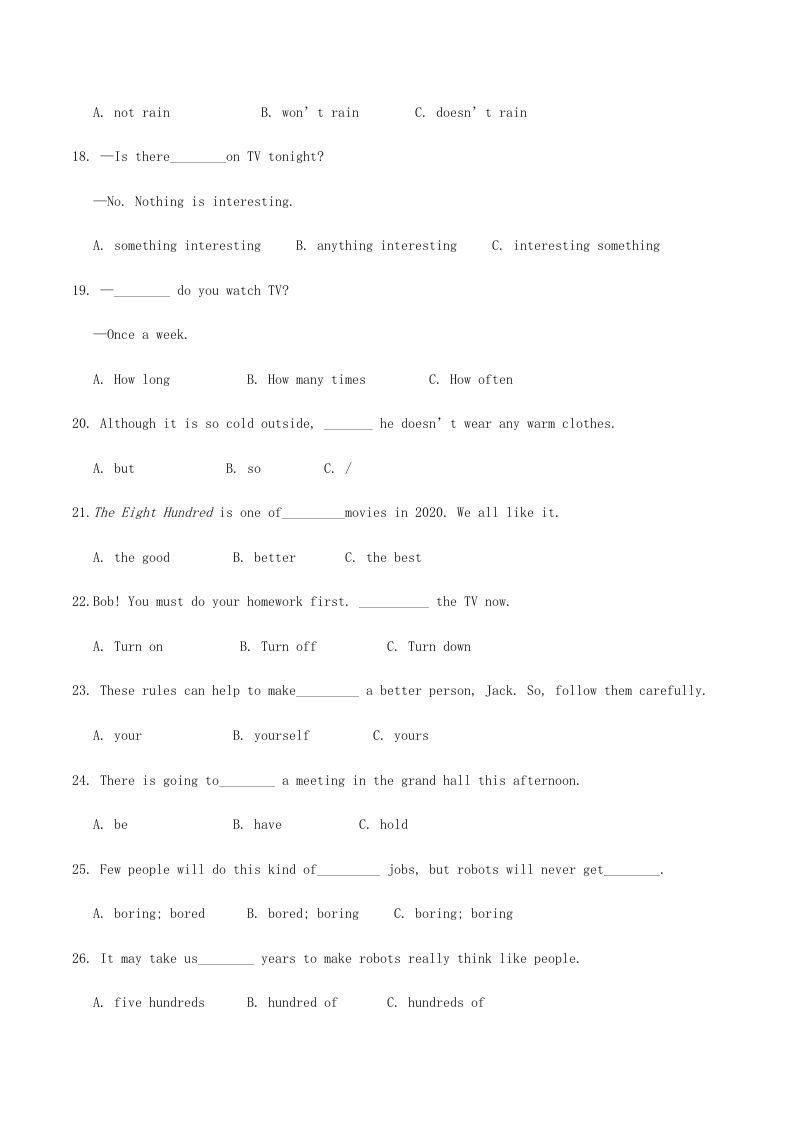 2020-2021学年山东省临沂市兰陵县八年级上学期期末英语试题及答案(Word版) 期末试卷 幼师郝雪 2025-10-28 八年级 资源下载下载价格1.2 下载币VIP免费升级VIP立即购买 ——预览已结束,还剩14页未读——开通会员后可免费下载高清完整文档 阅读全文
