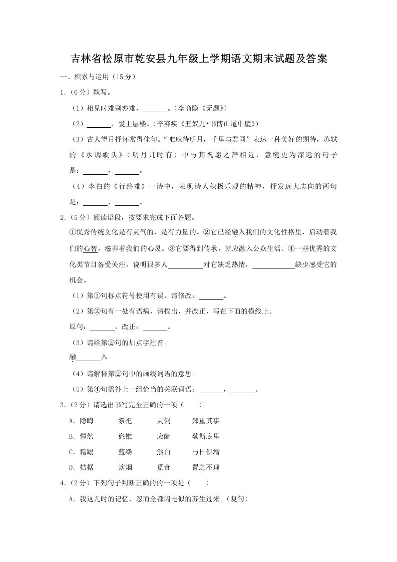 吉林省松原市乾安县九年级上学期语文期末试题及答案(Word版) 期末试卷 王赞 2025-10-28 九年级 资源下载下载价格1.8 下载币VIP免费升级VIP立即购买 ——预览已结束,还剩21页未读——开通会员后可免费下载高清完整文档 阅读全文