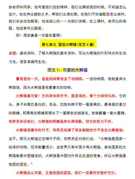 【精品】三年级下册语文寒假预习1-8单元写作范文梳理