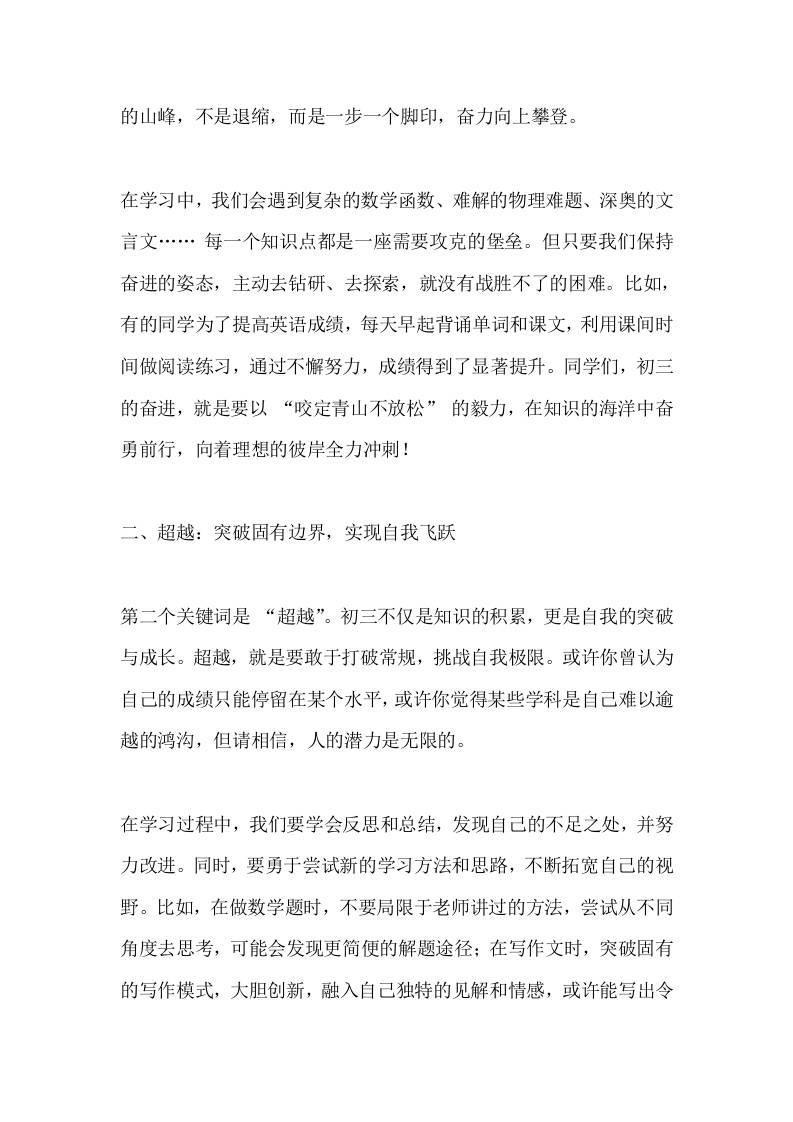 走进初三启动仪式,校长讲话:燃梦初三,向光而行 综合资料 王赞 2025-10-16 教务 资源下载下载价格1.8 下载币VIP免费升级VIP立即购买 ——预览已结束,还剩3页未读——开通会员后可免费下载高清完整文档 阅读全文