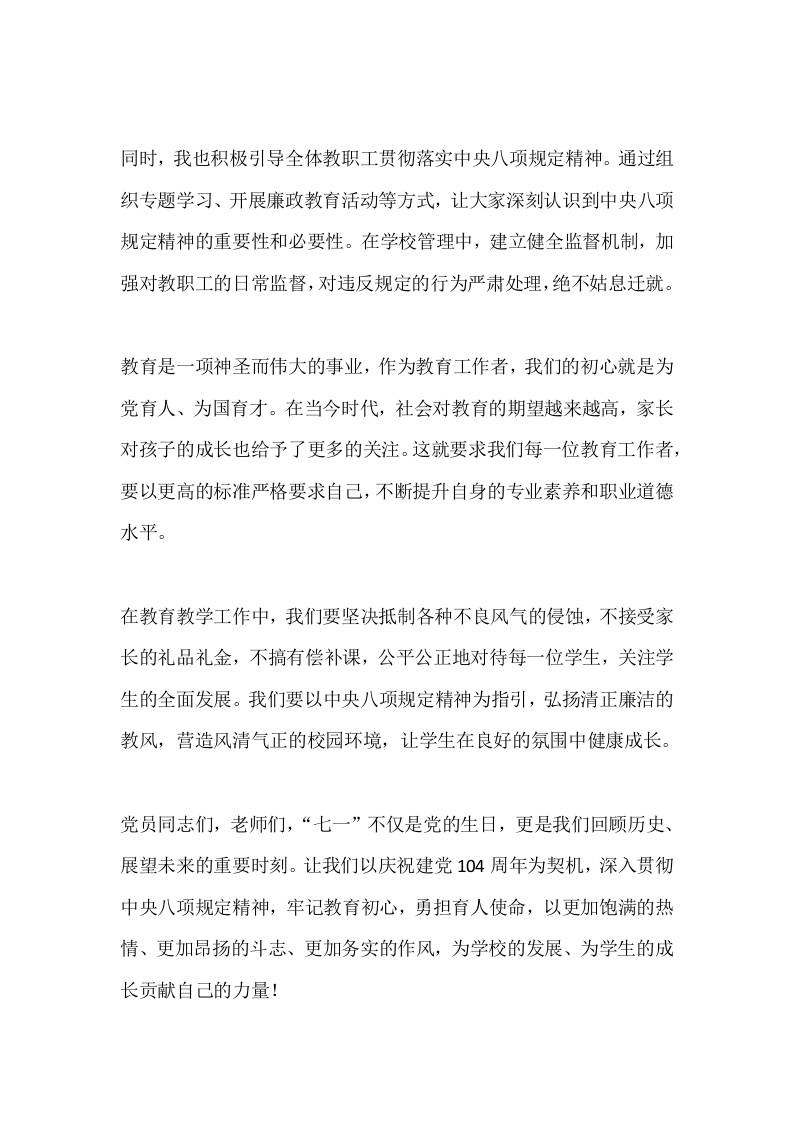中小学校长在2025“七一”庆祝活动上的讲话:深入贯彻中央规定精神,坚守教育初心,担当育人使命 综合资料 幼师王老师 2025-10-16 教务 资源下载下载价格1.2 下载币VIP免费升级VIP立即购买 ——预览已结束,还剩1页未读——开通会员后可免费下载高清完整文档 阅读全文