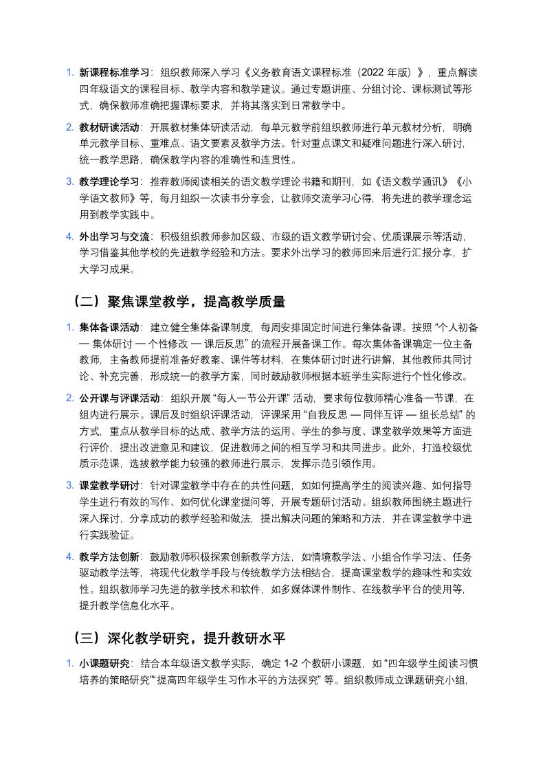 四年级语文教研组长工作计划 综合资料 幼师常 2025-10-16 教务 资源下载下载价格1.2 下载币VIP免费升级VIP立即购买 ——预览已结束,还剩5页未读——开通会员后可免费下载高清完整文档 阅读全文