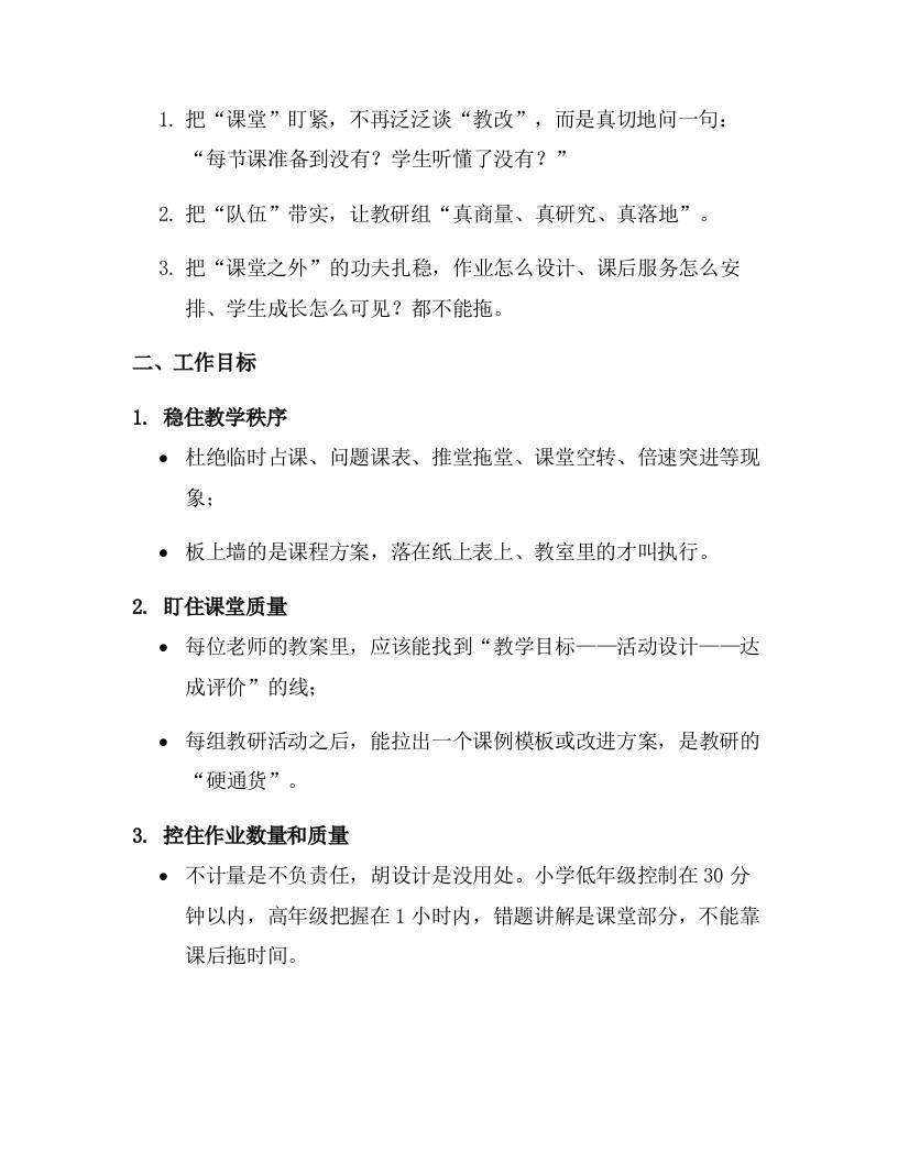 2025–2026学年第一学期教导处工作计划:教学为本,质量为先,一条主线贯到底! 综合资料 幼师王老师 2025-10-16 教务 资源下载下载价格1.8 下载币VIP免费升级VIP立即购买 ——预览已结束,还剩11页未读——开通会员后可免费下载高清完整文档 阅读全文