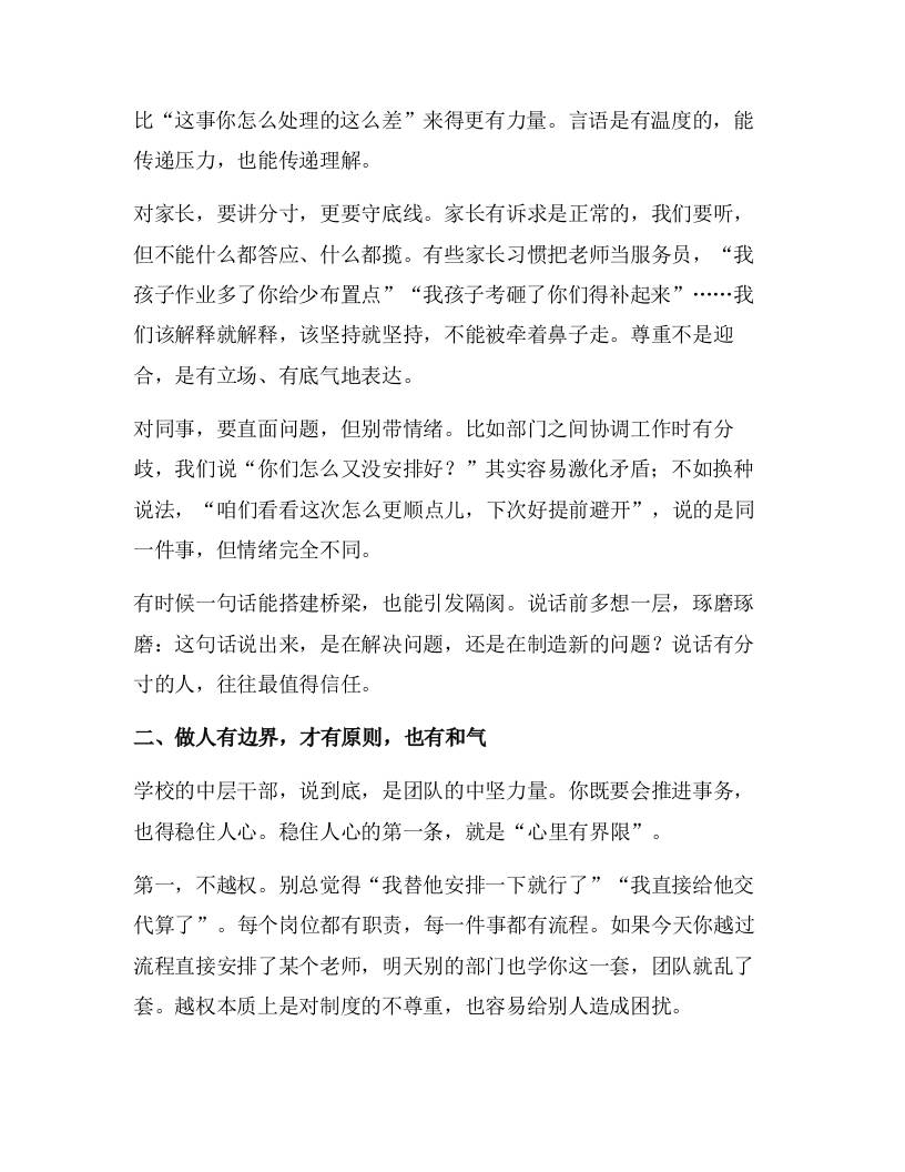 学校中层行政班子会上,校长讲话:守边界、讲规矩、促合力——以高效管理打造优质学校! 综合资料 王赞 2025-10-15 教务 资源下载下载价格0.8 下载币VIP免费升级VIP立即购买 ——预览已结束,还剩2页未读——开通会员后可免费下载高清完整文档 阅读全文