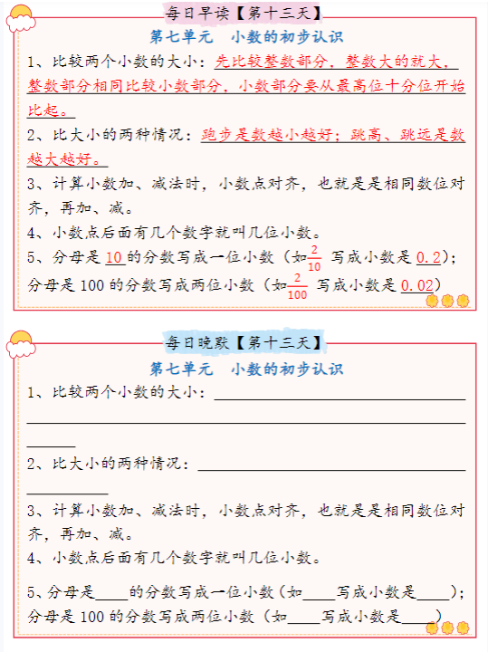 三年级数学下册必背知识点整理人教版(早读晚默)