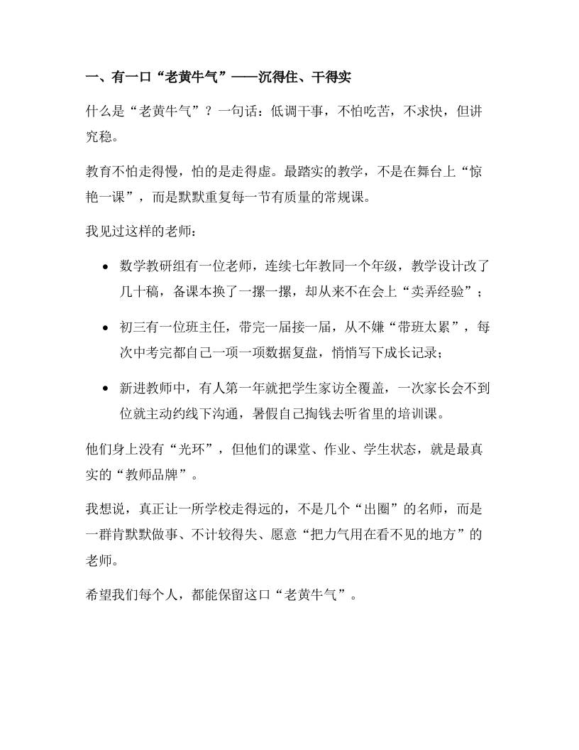 2025年秋季开学教师大会上,校长讲话:教师的四种气质——老黄牛气、泥土气、竹子气、书卷气! 综合资料 水果叶子 2025-10-15 教务 资源下载下载价格0.8 下载币VIP免费升级VIP立即购买 ——预览已结束,还剩4页未读——开通会员后可免费下载高清完整文档 阅读全文