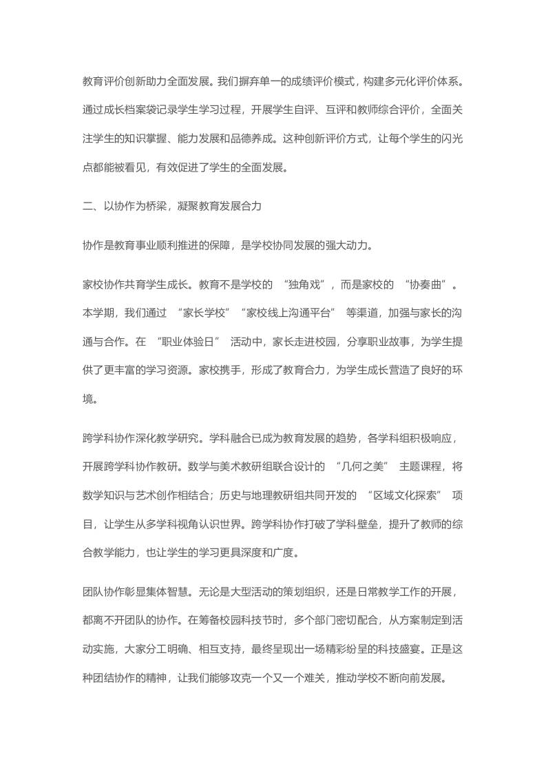 期末教师工作总结会,校长发言:创新、协作、卓越 期末试卷 栀晴 2025-10-15 教务 资源下载下载价格0.8 下载币VIP免费升级VIP立即购买 ——预览已结束,还剩2页未读——开通会员后可免费下载高清完整文档 阅读全文