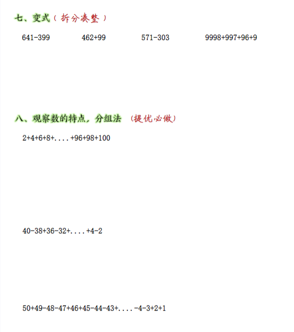 四年级下册数学运算定律分类练习
