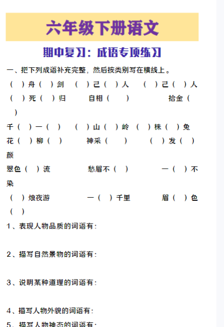 六年级下册语文成语专项练习期中复习 期中试卷 雄鹰老师 2025-05-18 六年级 资源下载下载价格1.6 下载币VIP免费升级VIP立即购买 本页为资源截图试看,VIP会员免费下载,同时VIP会员可以打包下载 阅读全文