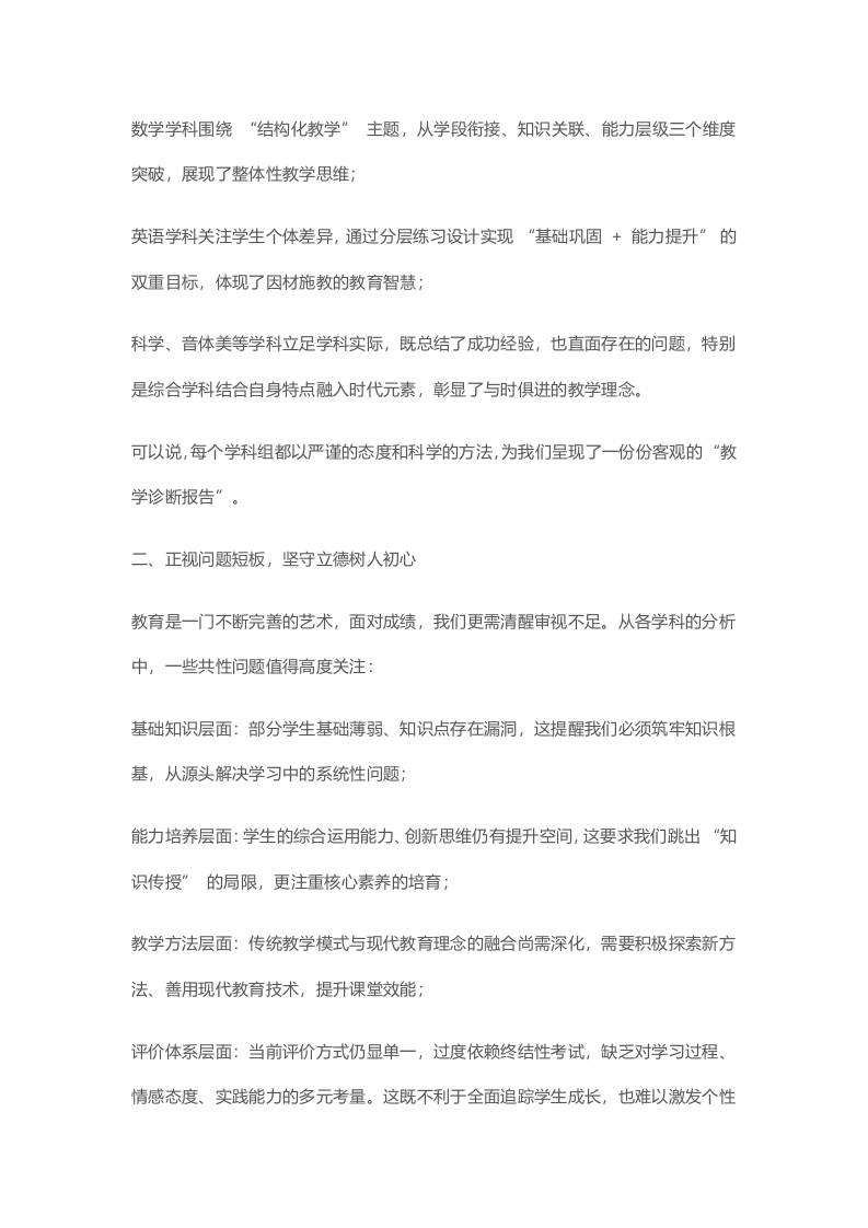 期末全学科教学质量分析会,校长发言:聚焦质量、直面问题、共促提升 期末试卷 幼师李老师 2025-10-15 教务 资源下载下载价格1.8 下载币VIP免费升级VIP立即购买 ——预览已结束,还剩2页未读——开通会员后可免费下载高清完整文档 阅读全文