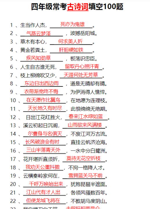 【高清电子版】四年级常考古诗词填空100题有答案 不限 幼师酸奶 2025-03-25 四年级 资源下载下载价格1.6 下载币VIP免费升级VIP立即购买 本页为资源截图试看,VIP会员免费下载,同时VIP会员可以打包下载 阅读全文