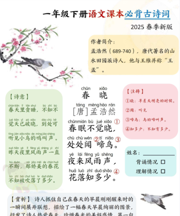 【高清电子版】一年级下册语文课本必背古诗词 不限 幼师酸奶 2025-03-04 一年级 资源下载下载价格1.6 下载币VIP免费升级VIP立即购买 本页为资源截图试看,VIP会员免费下载,同时VIP会员可以打包下载 阅读全文