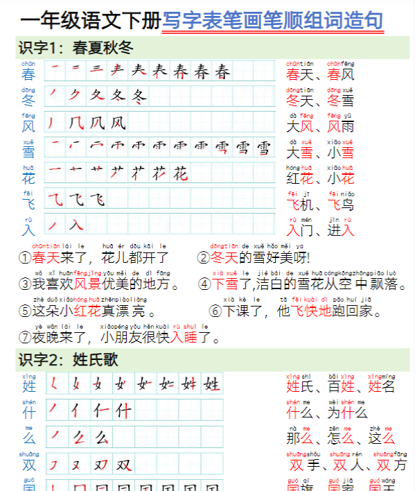 【高清电子版】【写字表笔画笔顺组词造句】一下语文 不限 幼师李老师 2025-02-24 一年级 资源下载下载价格1.6 下载币VIP免费升级VIP立即购买 本页为资源截图试看,VIP会员免费下载,同时VIP会员可以打包下载 阅读全文