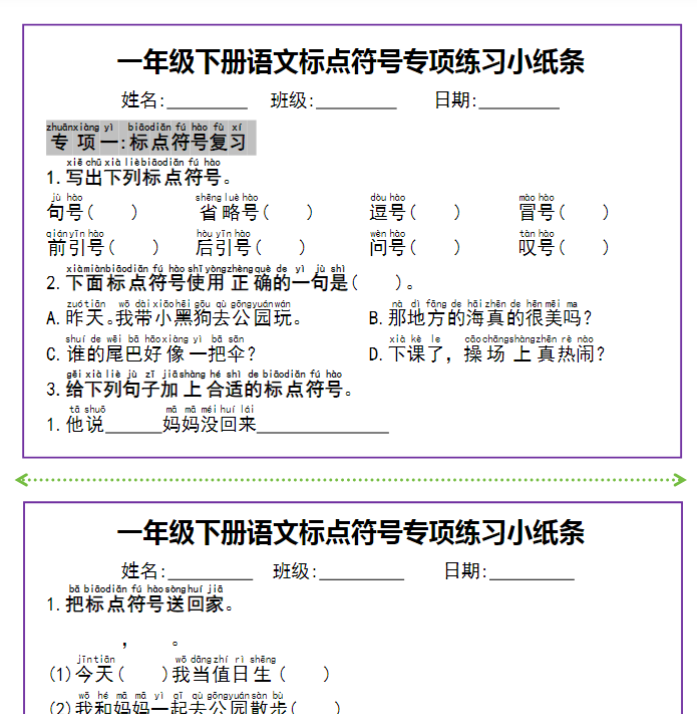 【高清电子版】【标点符号专项练习小纸条】一下语文 专项练习 幼师PPT 2025-02-23 一年级 资源下载下载价格1.6 下载币VIP免费升级VIP立即购买 本页为资源截图试看,VIP会员免费下载,同时VIP会员可以打包下载 阅读全文