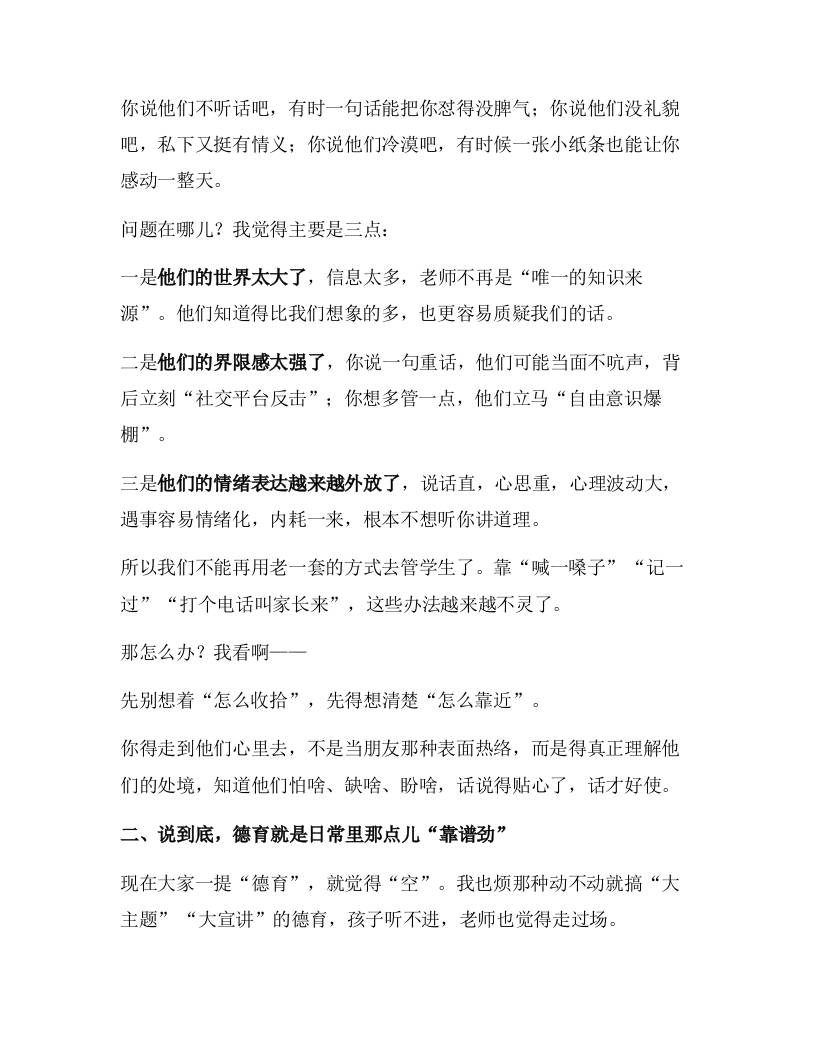 班主任工作会议上,校长讲话:说句心里话:班主任,真不是谁都能干的! 综合资料 幼师王老师 2025-10-15 教务 资源下载下载价格1.2 下载币VIP免费升级VIP立即购买 ——预览已结束,还剩3页未读——开通会员后可免费下载高清完整文档 阅读全文