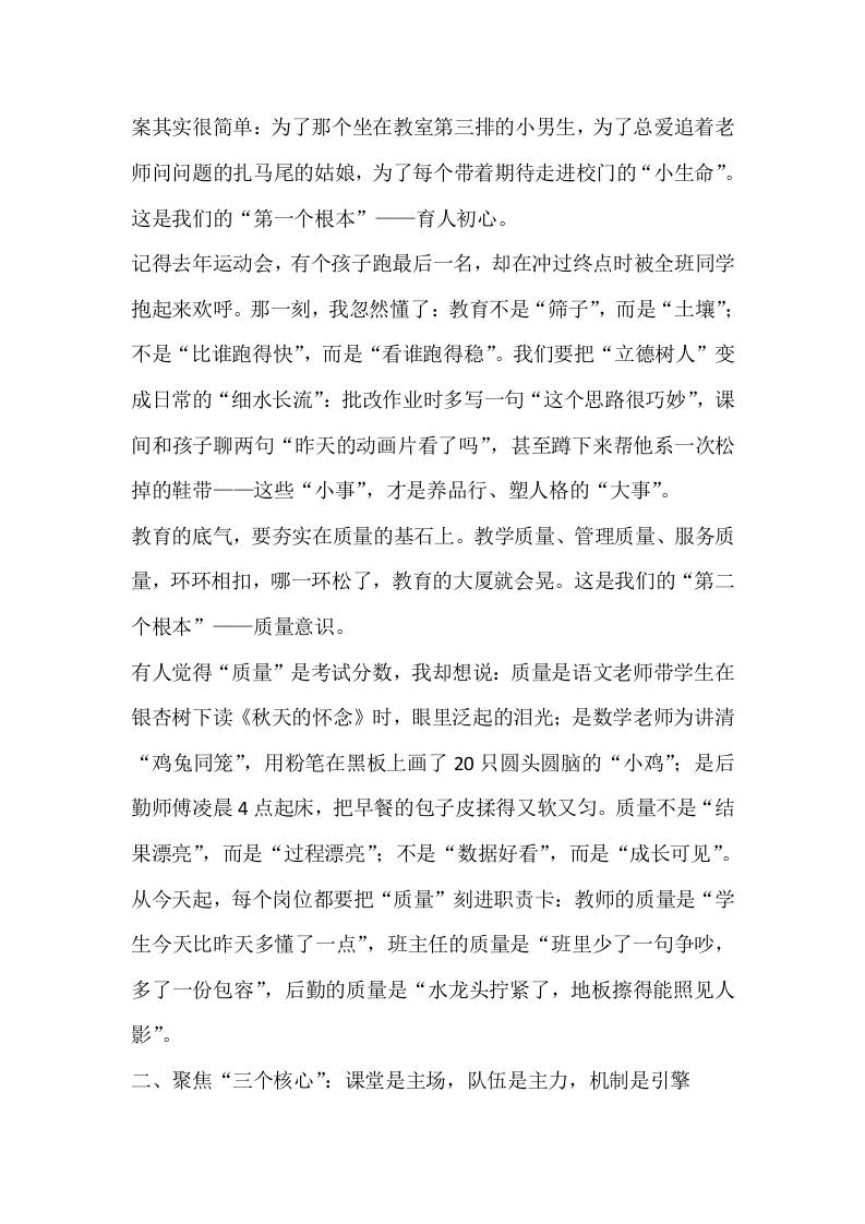 学校全体教职工大会上,校长讲话:深耕教育沃土,厚植发展根基,以“23456工程”绘就高质量办学新图景! 综合资料 王赞 2025-10-14 教务 资源下载下载价格1.2 下载币VIP免费升级VIP立即购买 ——预览已结束,还剩7页未读——开通会员后可免费下载高清完整文档 阅读全文