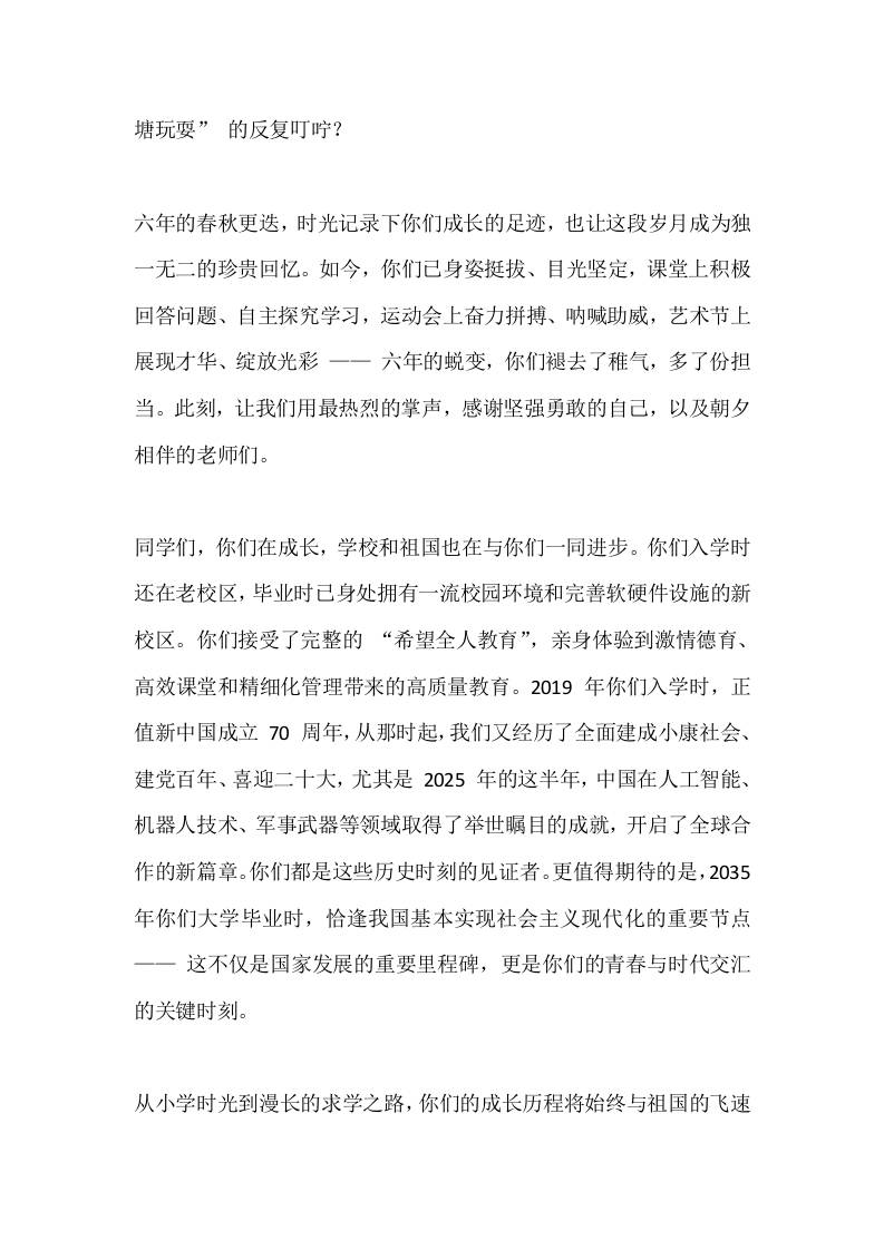 2025年六年级毕业典礼,小学校长讲话:培育完整人格,少年迈向新途 综合资料 幼师酸奶 2025-10-14 教务 资源下载下载价格1.2 下载币VIP免费升级VIP立即购买 ——预览已结束,还剩3页未读——开通会员后可免费下载高清完整文档 阅读全文