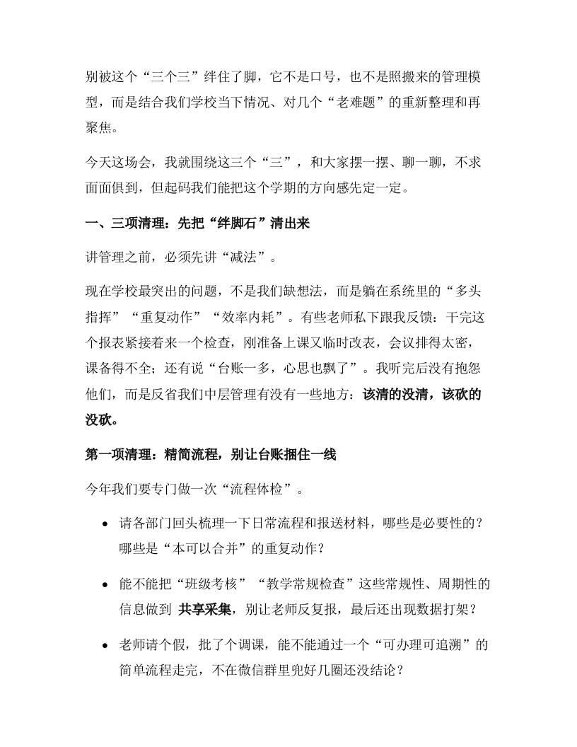 2025年秋季中层干部会议上,校长讲话:抓住“三个三”,让学校管理更走心! 综合资料 水果叶子 2025-10-14 教务 资源下载下载价格1.8 下载币VIP免费升级VIP立即购买 ——预览已结束,还剩6页未读——开通会员后可免费下载高清完整文档 阅读全文