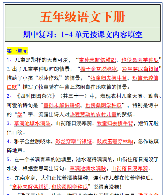 五年级语文下册期中复习1-4单元按课文内容填空 期中试卷 幼师王老师 2024-08-15 五年级 资源下载下载价格1.6 下载币VIP免费升级VIP立即购买 本页为资源截图试看,VIP会员免费下载,同时VIP会员可以打包下载 阅读全文