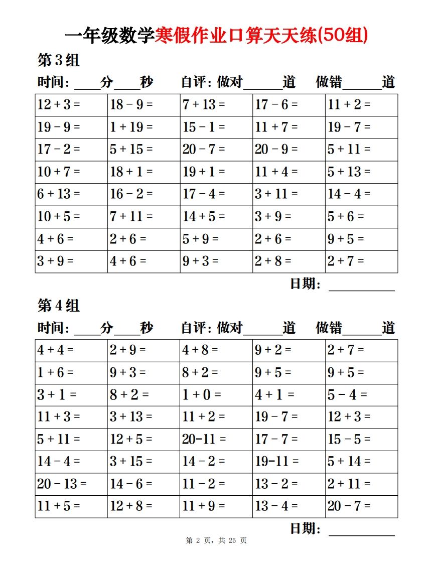 【口算】一下数学寒假作业口算天天练(50组)25页 寒假 雄鹰老师 2024-07-09 一年级 资源下载下载价格1.2 下载币VIP免费升级VIP立即购买 ——预览已结束,还剩23页未读——开通会员后可免费下载高清完整文档 阅读全文