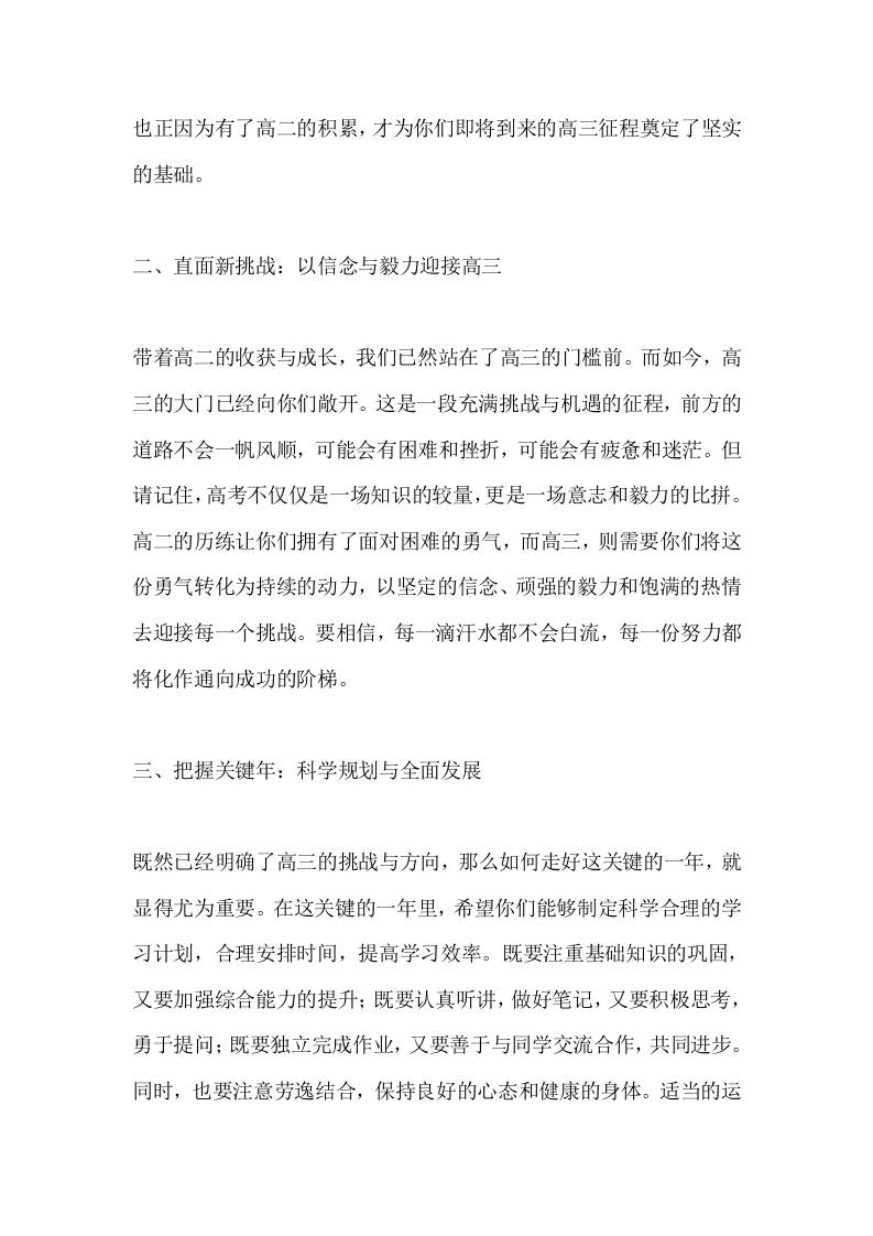 高二升高三升级仪式上,校长讲话:高三的号角已经吹响,梦想的彼岸就在前方 综合资料 幼师酸奶 2025-10-14 教务 资源下载下载价格1.2 下载币VIP免费升级VIP立即购买 ——预览已结束,还剩1页未读——开通会员后可免费下载高清完整文档 阅读全文