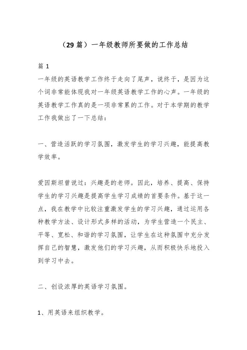 (29篇)一年级教师所要做的工作总结 综合资料 栀晴 2025-10-14 教务 资源下载下载价格1.2 下载币VIP免费升级VIP立即购买 ——预览已结束,还剩121页未读——开通会员后可免费下载高清完整文档 阅读全文