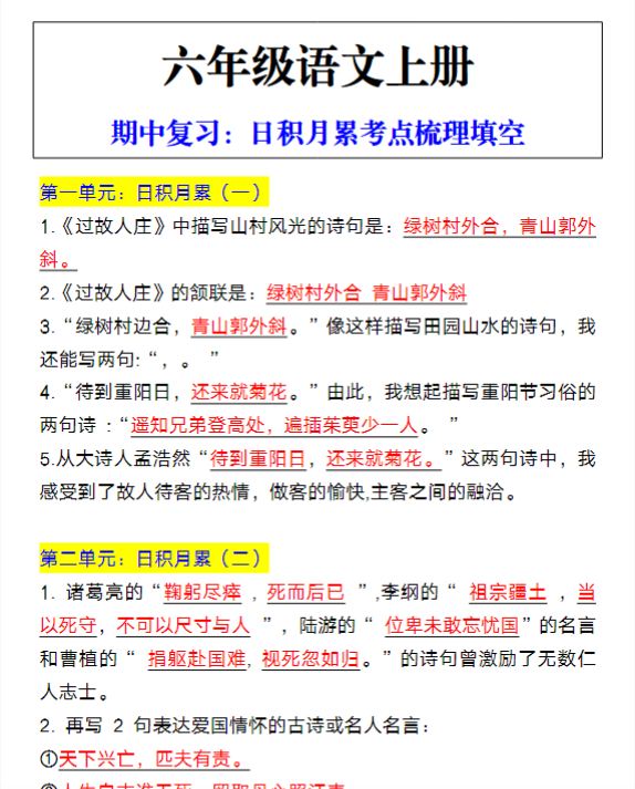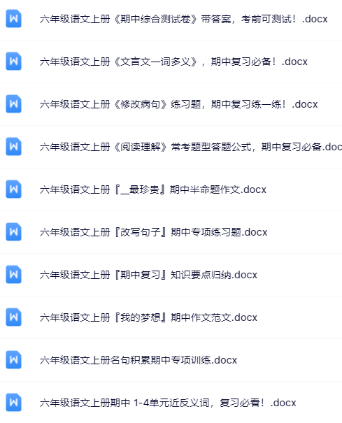 【新版期中打包100套】小学六年级上册语文期中精品测试卷【可编辑高清无水印】