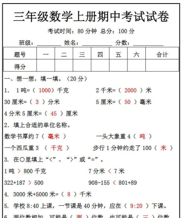 【新版期中打包13套】小学三年级上册数学期中精品测试卷【可编辑高清无水印】